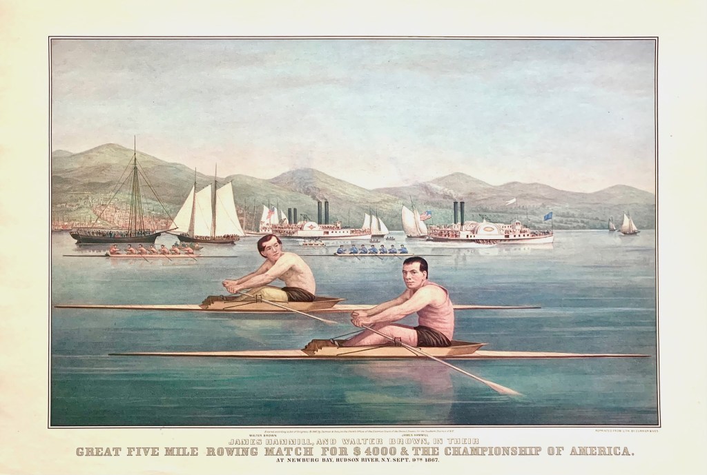 In the Newburgh race, which had initially been postponed due to bad weather, it was determined that Brown was at fault for the mishap, even though he had extricated his boat following the collision with Hamill and finished the course. Hamill, therefore, was declared the winner. The race (pre-collision) was commemorated in a Currier & Ives color lithograph titled Great Five Mile Rowing Match for $4000 and the Championship of America (1867).