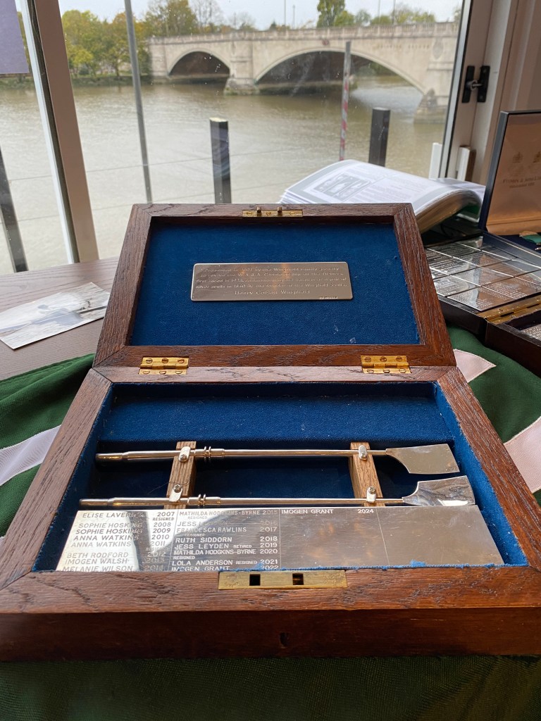 The Women’s Wingfield Sculls Trophy on display in the Tideway Scullers clubroom.