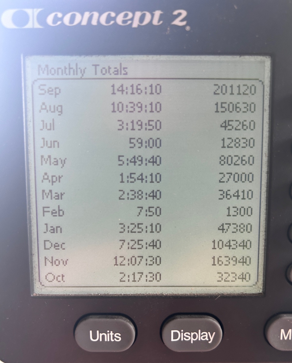 So, I decided to row according to my energy levels each day, rowing for up to 50 minutes on days when I felt good, and taking a day or two away from the ergometer when I didn’t. I also decided on front ending the training load in the first half of the month, to minimise the fatigue I knew would have to battle at the end of the month.