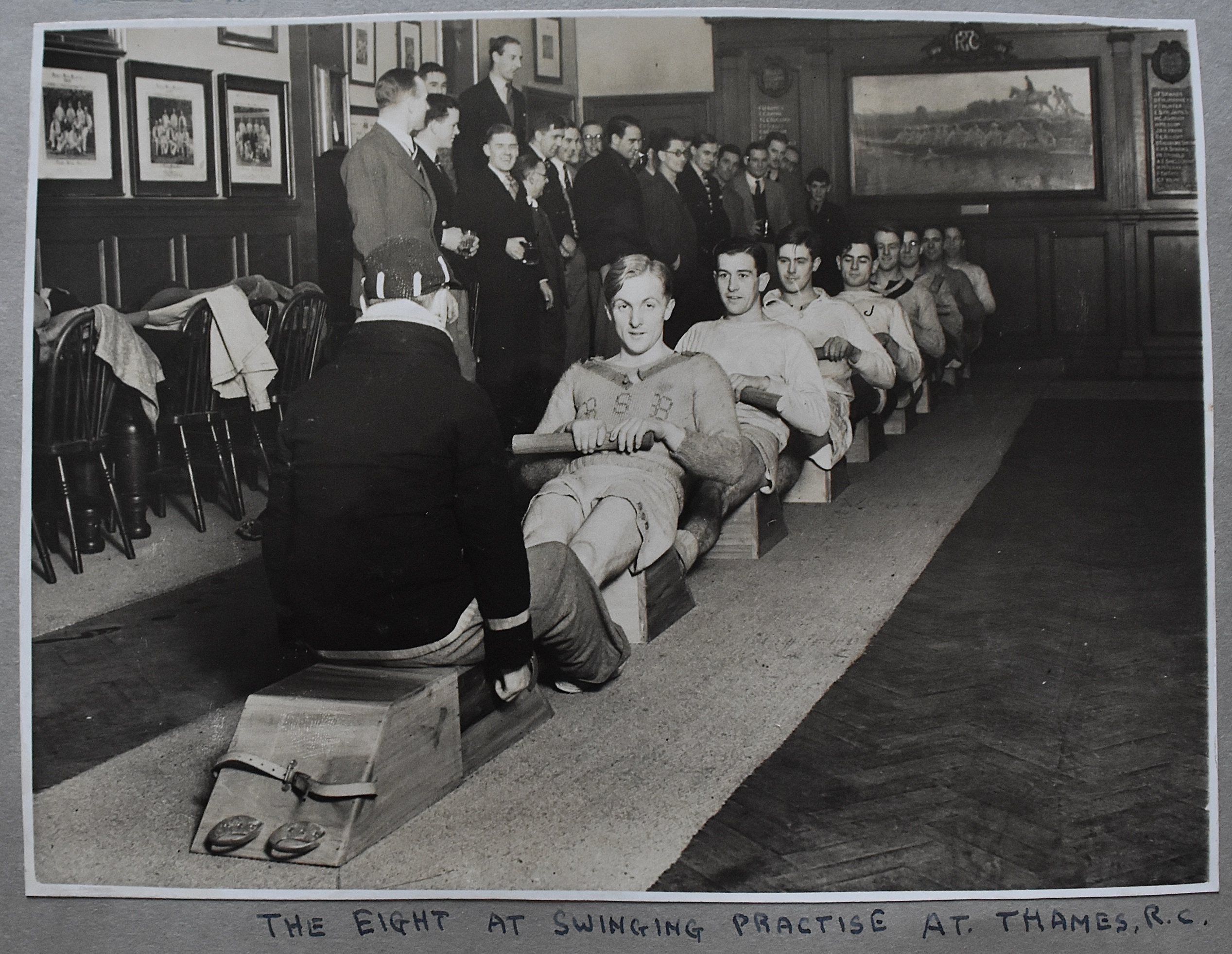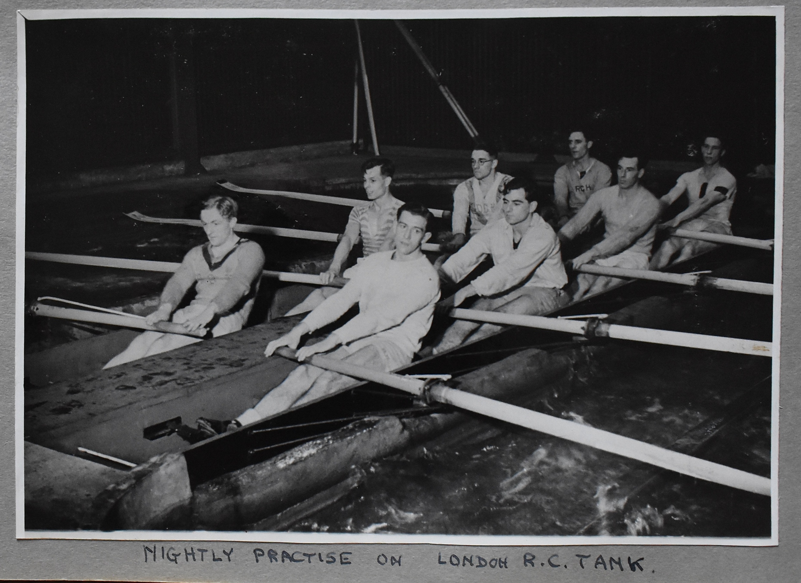 Raising the crew has been no easy matter, but Jack Beresford, the famous Olympic oarsman, and PH Jackson have made an extraordinarily good job of it… Coaching at present is in the hands of Beresford; he is not boring the crew with much over-talking. All their work is done at a hard paddle and they are becoming machine-like in their precision, with a magnificent leg drive.