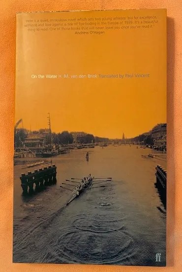 On the Water (1998; Eng. transl. Paul Vincent 2001) by H.M. van den Brink. This novella is a personal favourite of mine when it comes to a fictional story on rowing. Famous rowing coach Daniel Topolski wrote in his reviewed in The Guardian: “But rarely have sport and literature combined so seamlessly to produce such an absorbing and satisfying novel as this small miracle of a book from Holland by H M van den Brink. Sweetly lyrical, it tells of a shy young boy’s coming of age through sport in Amsterdam as Europe prepares for war.” In 1939, the two boys Anton and David are training in a coxless pair at a rowing club in Amsterdam. Their coach is a mysterious German, Schneiderhahn. Especially the working lad Anton becomes so captivated by his training that he is little aware what is happening around him. The novella begins at the end of the war with Anton, who is the one telling the story, sees the Allies planes flying to bomb Berlin and Germany. The tale then goes back and forth in time to the happy days when Anton and David are practicing for going to the 1940 Olympic Games in Helsinki. The war puts an end to the Olympics and the boys’ dream. The club closes and both David, who is Jewish, and coach Schneiderhahn disappear.