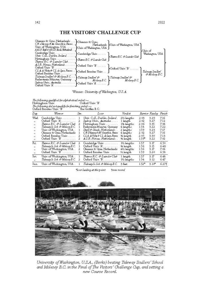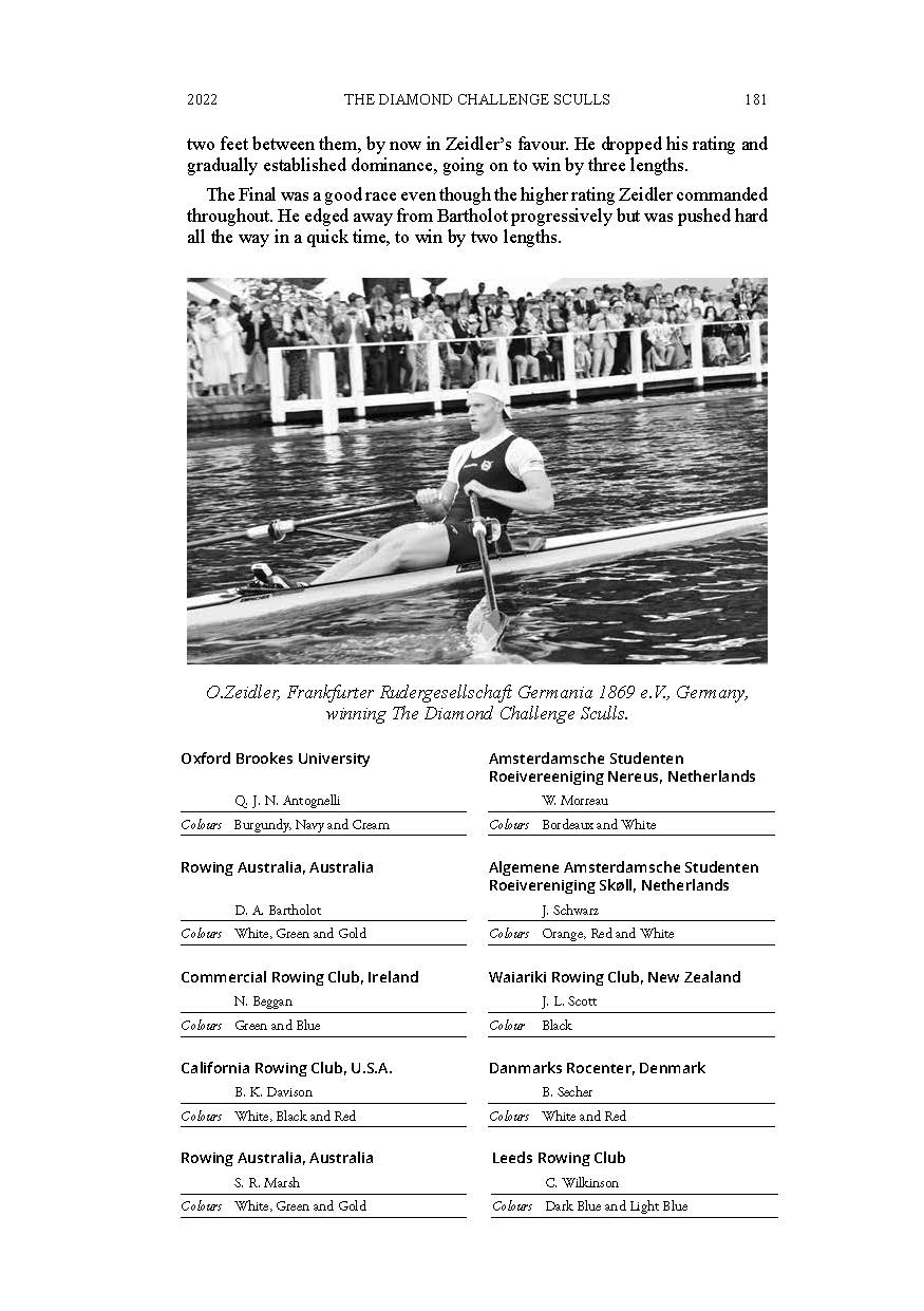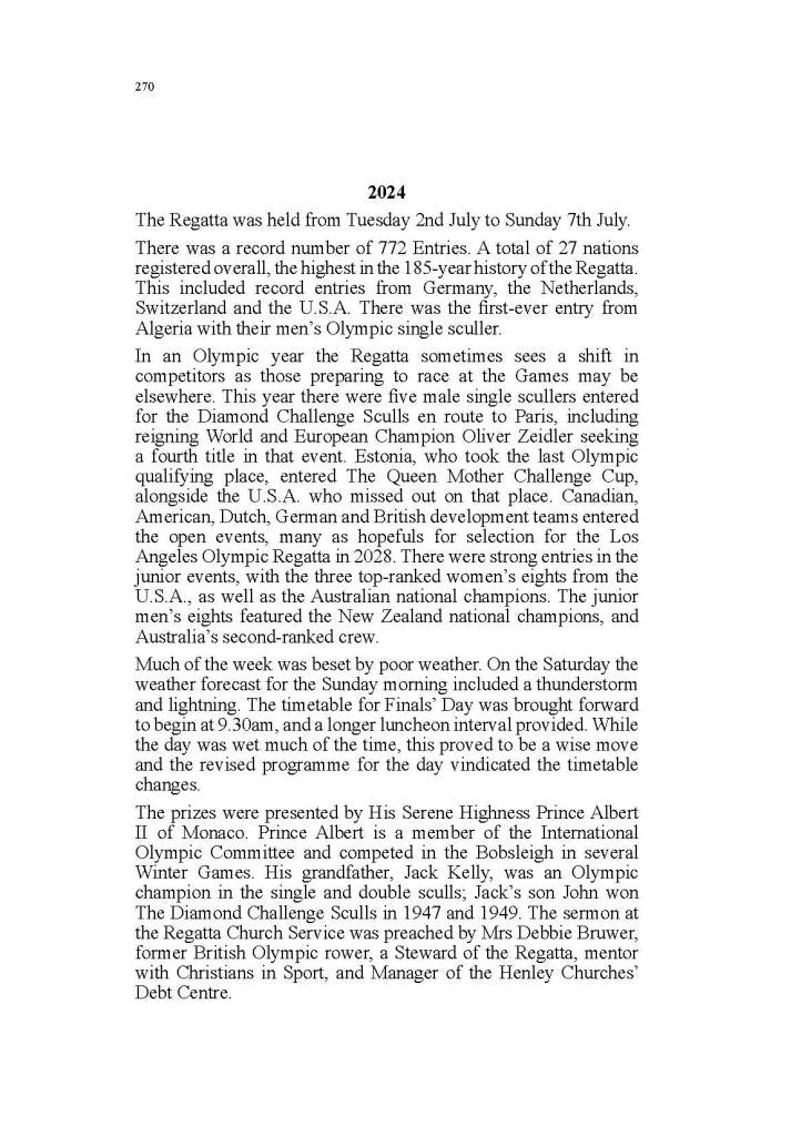 Which brings us to the fifteenth edition of the ‘Regatta Records’ covering the period 2020 to 2024. I say ‘the period’ because, of course, there was no Regatta in 2020. Even during the First World War there was some schoolboy racing on Henley Reach each year, albeit not HRR; in WWII and in 2020 there was no racing at all. And then in 2021 the first Regatta to be held in August took place with various precautions and changes, and very few overseas crews. By 2022 things were back to normal.