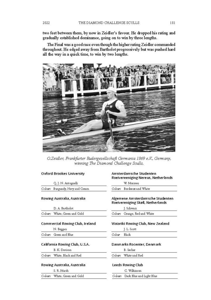 Sort out the photographs last, once you know where there is room, was the guidance. In fact, finding the best picture of a winning crew can be tricky. I resolved to use only those in which the faces of the competitors are visible, but sometimes even with a close result there might not be both boats in the shot. Trophy presentation pictures make for variety. Having included the three new trophies (for 2021) in the introduction, and having room after searching for good pictures of winners, the idea to include all 27 pieces of silverware occurred to me: they are dotted throughout on pages that relate to the same event as the cup.
