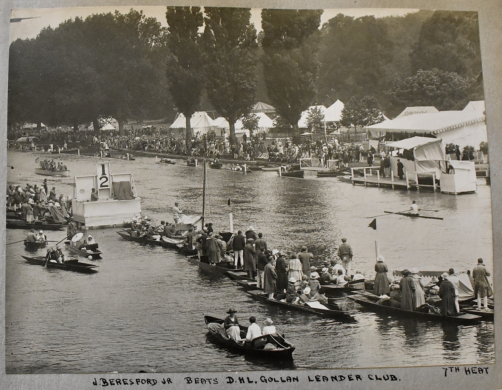 Beresford led most of the way but Kelly passed him in the final strokes. This race held particular significance for Kelly who allegedly had only decided to enter after being excluded from the 1920 Diamond Sculls for reasons that are still disputed. Kelly was reported as saying that he wanted “to get a crack at the man who wins the Diamond Sculls” – which turned out to be Beresford. Despite this, the two men became lifelong friends.