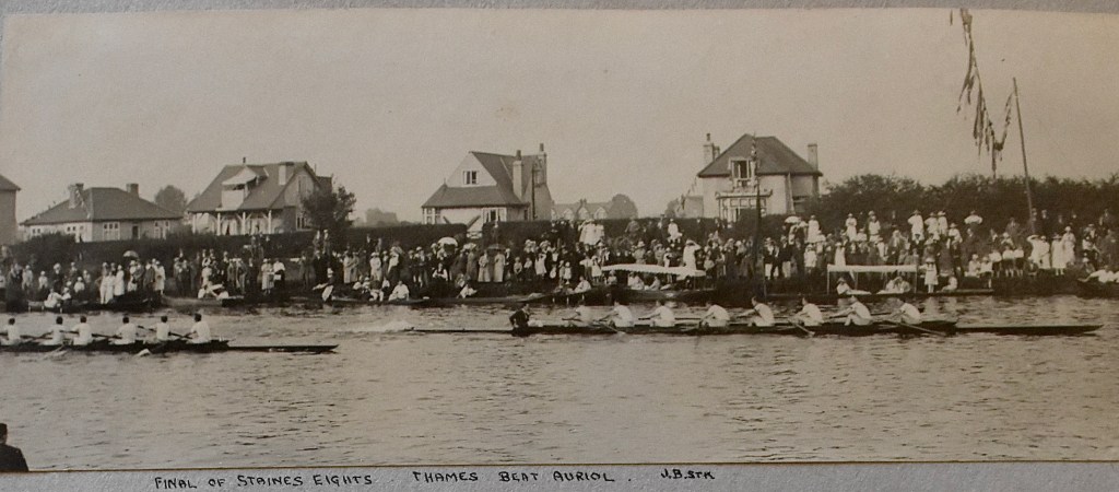 He went to Fowey in Cornwall to recuperate and here he borrowed a dinghy and rebuilt his strength by rowing it in the estuary and along the coast. By the summer of the first year of peace, 1919, the domestic rowing programme had returned and Jack decided to compete.
