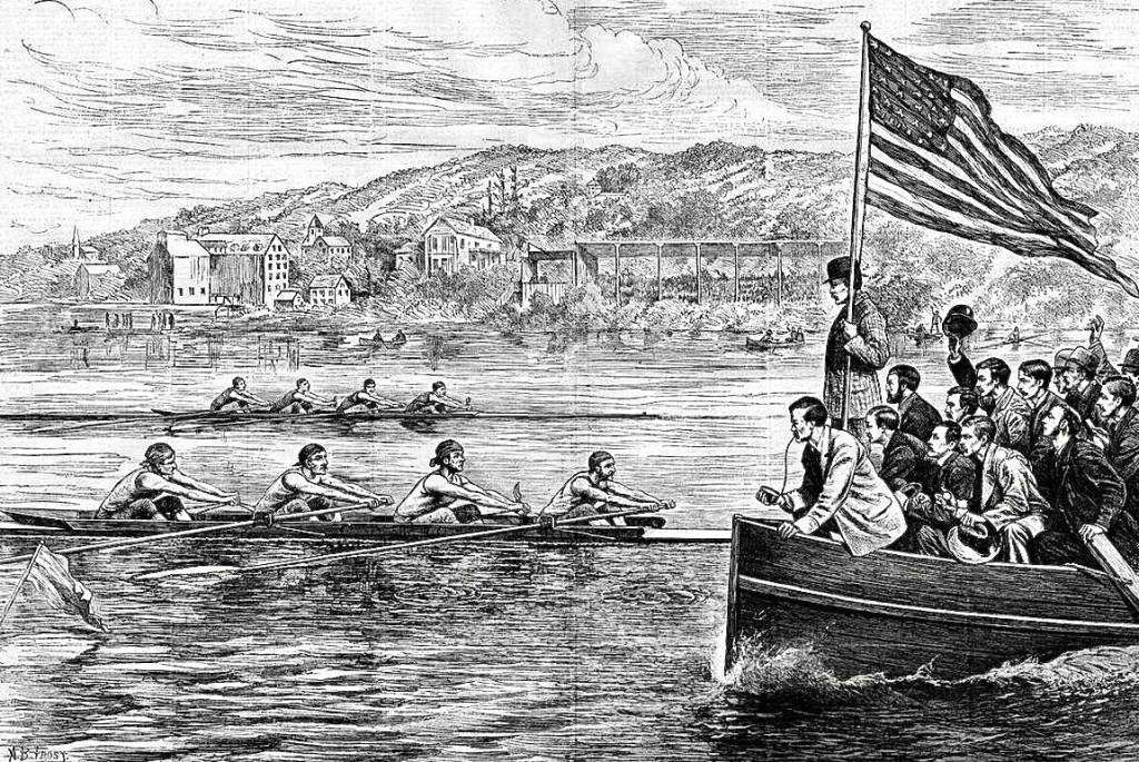 The “Shoes” were described as a “rough-looking lot, who dressed in blue flannel shirts and rough clothing of the woods,” startling members of the proper British boat clubs situated along the Thames. It was said that one of their chief amusements while at Henley was to hurl plugs of chewing tobacco at a portrait of Queen Victoria which ornamented their Henley boathouse wall. To the British, the “Shoes” surely must have seemed like a rough-cut bunch of provincials from the untamed backwoods of America.