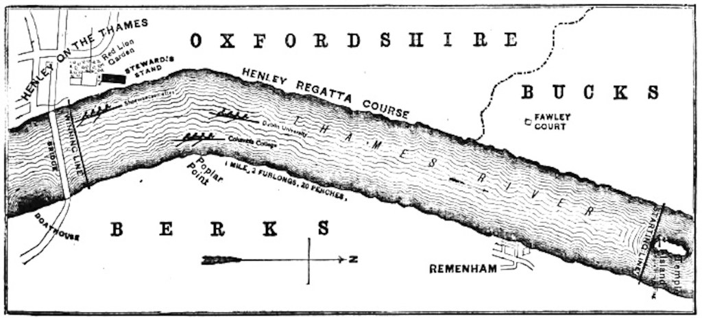 Henley, the oldest town in Oxfordshire, is thirty-five miles northwest from London, and is a typical sleepy English town, whose only life is during regatta week, coming once a year, its only other relief from absolute stagnation being weekly market-day, when for a few hours its one street of any importance or business is thronged with burley farmers, bleating sheep, and lowing herds.
