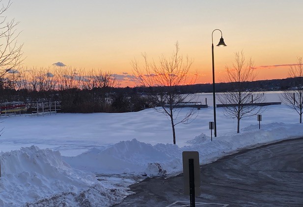 We row through snow, here, in Mystic,