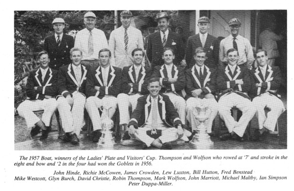 Michael went up to Pembroke in the autumn of 1956 and soon established himself in the first eight. Henley 1957 saw his Ladies’ Plate eight win the event, and later in the day, half the crew won the Visitors’ Cup – a rare double. Michael would often tell Hugh that in those days’ crews were able to keep the trophies. Unfortunately, in an act of exuberance, Michael dropped the Visitors’ Cup from the balcony of Leander to a fellow crew member, who promptly dropped it putting a dent in the 110-year-old trophy. Apparently, thereafter the Stewards kept a much tighter grip on the trophies.