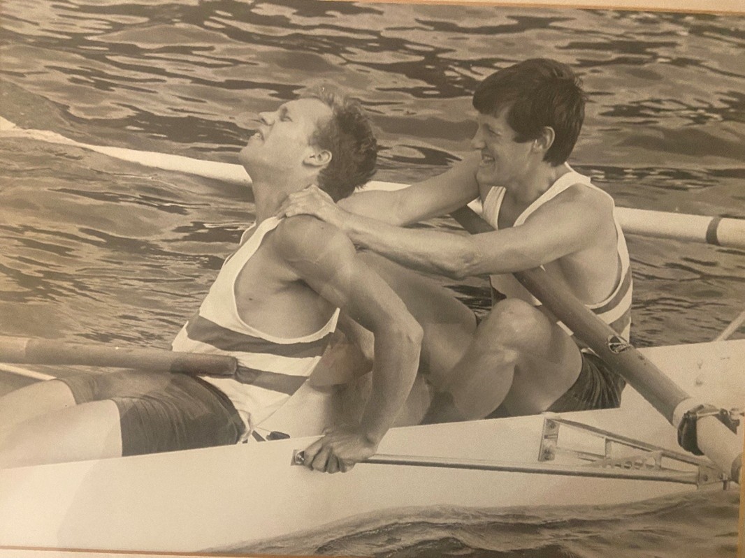 Hugh told HTBS that he grew up with a picture of his father’s 1958 win on the wall in his study, but there was no sign or trace of any pictures of the 1959 race! Michael went on to coach Pembroke at numerous Henleys alongside Crowden, including the 1974 Visitors’ Cup win when Pembroke beat Christ Church, Oxford, in the final. Two years later, Pembroke reached the final of the Ladies’ Plate, losing to Trinity College, Dublin. After the 1974 win, Hugh recalls the crew throwing his father, fully clothed, into the Thames in celebration – something that, as an eight-year-old at the time, was difficult to fathom why! Hugh was taken by his father to watch the Boat Race in Putney each year. He recalls the optimism his father always had on the way down to London, which, between 1976 and 1985, was invariably punctured by the time Oxford came past London RC leading Cambridge – a rather depressing trip home invariably ensued!