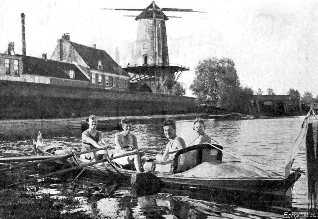 6th July – Started off for the Vijf Provinces tour in double sculler … quite a strong wind sprang up and we used the sail a lot. Had picnic lunch near Leiden. Arrived Haarlem at 6.40 after splendid day.