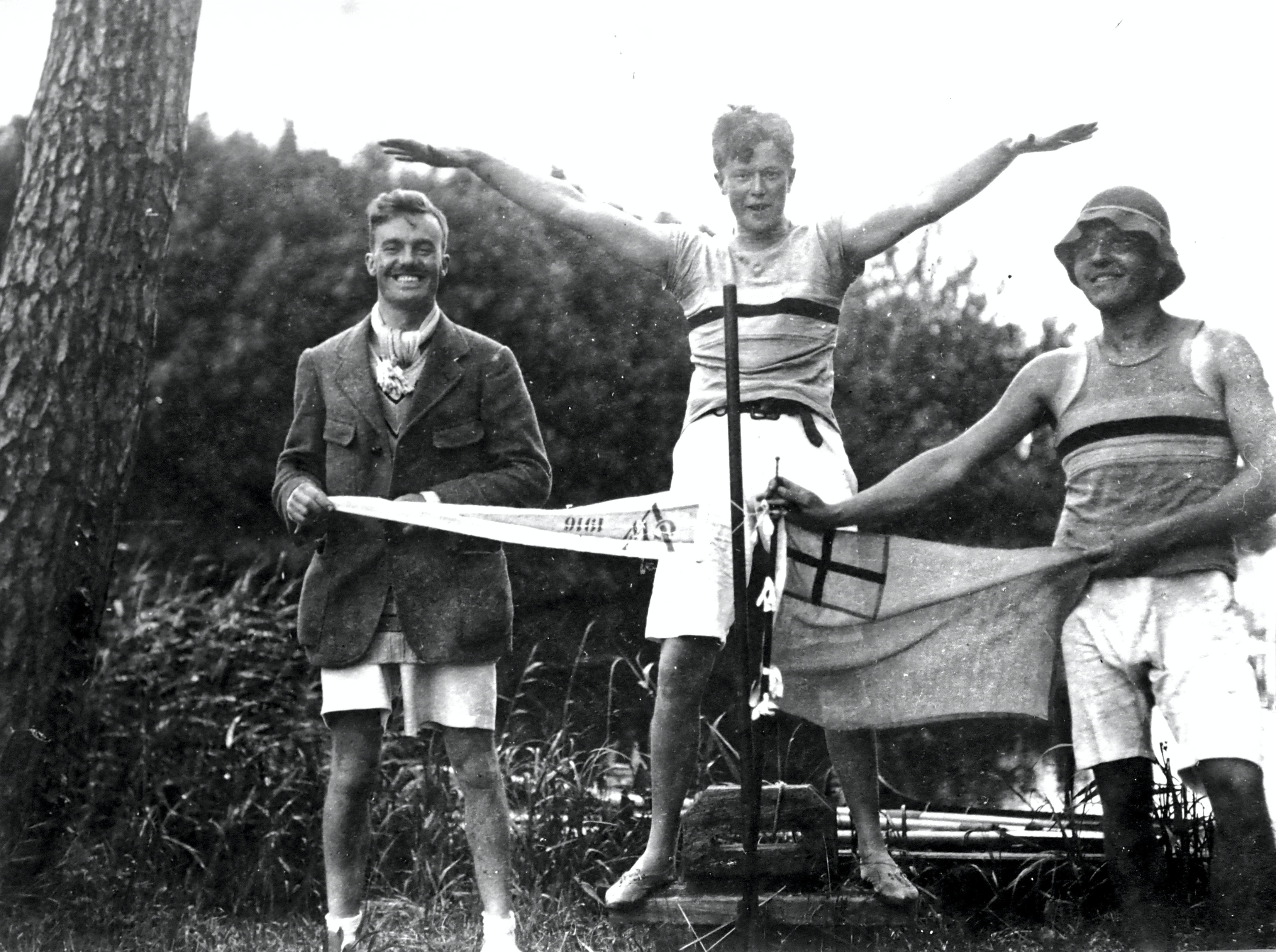 “There exists a great enthusiasm for the Rondvaart through the Netherlands, and all signs suggest that this event shall prove a worthy successor to the Five Provinces Tour, which took place in 1915. Time and again, reports emerge concerning sportsmen who have succeeded in earning a considerable number of pennants within a remarkably short period of time. Thus, we here depict a quartet of rowers, members of De Kaag (De Laak?) who within a period of no more than fourteen days, succeeded in collecting no fewer than fifteen pennants.