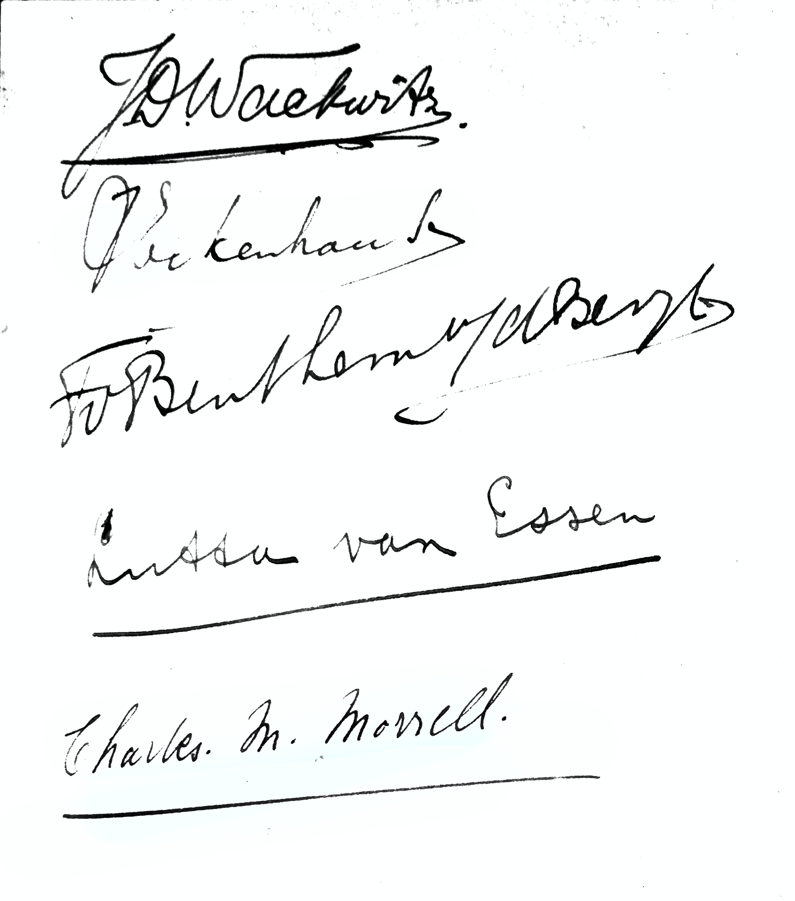 The crew consists, from left to right, of H.H. Lt. Ch. M Morrell, a British airman who was shot down over our territory and subsequently interned, J.D. Wackwitz, Jhr F.H.G. van Benthem v.d. Bergh and H. Eikenhousen.