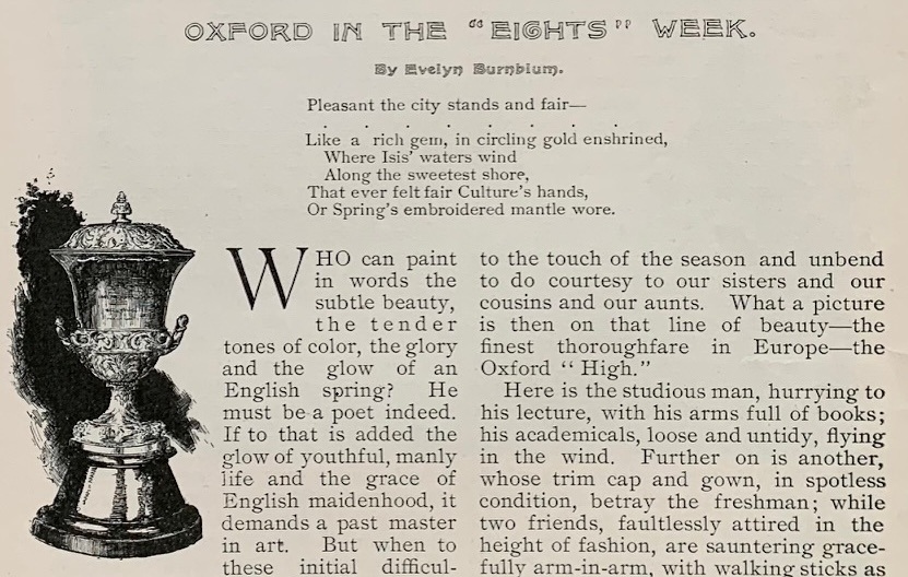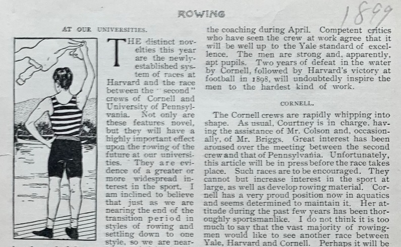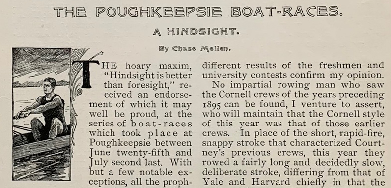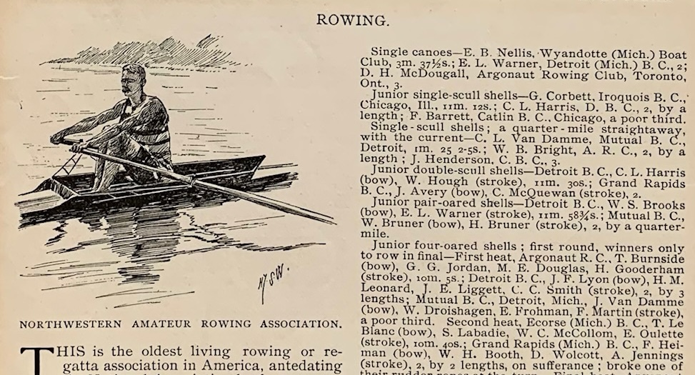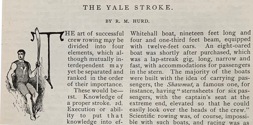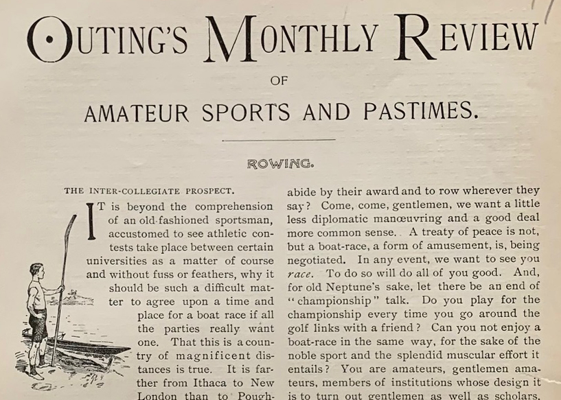 Magazines sometimes applied graphic images to introduce chapters or articles. I’ve chosen to show a few rowing examples from Outing, An Illustrated Monthly Review of Amateur Sports and Pastimes.