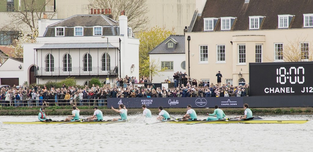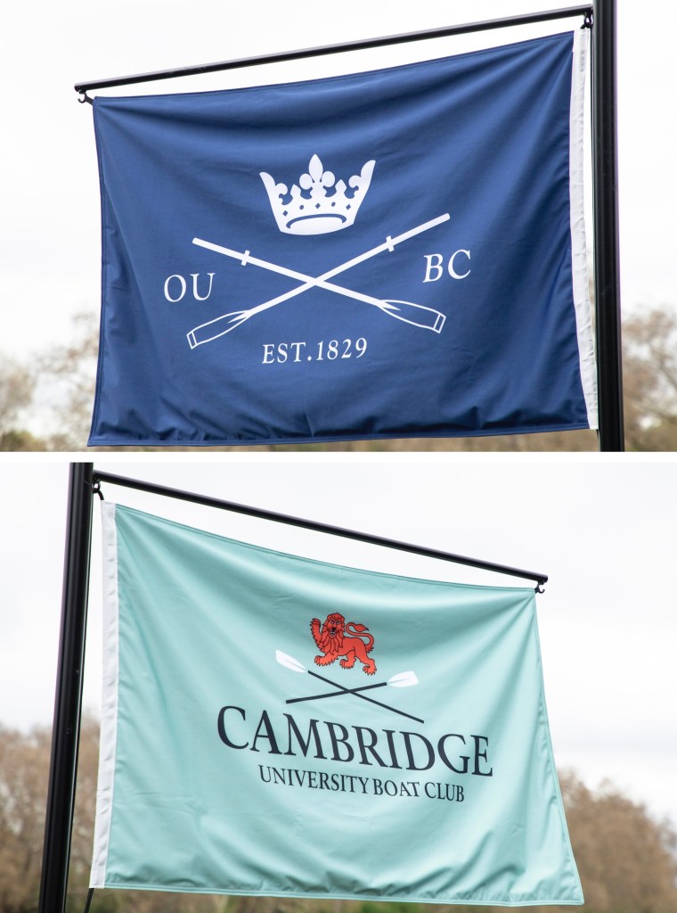 Both boat club flags at Putney. As I mention annually and pedantically, OUBC was not founded in the year of the first Boat Race, 1829, it was formed at a meeting held on 23 April 1839 following the third race and Oxford’s second loss. CUBC was founded on 9 December 1828 prior to the first race. A Light Blue friend holds that this was the first example of Oxford playing catch up but I could not possibly comment.