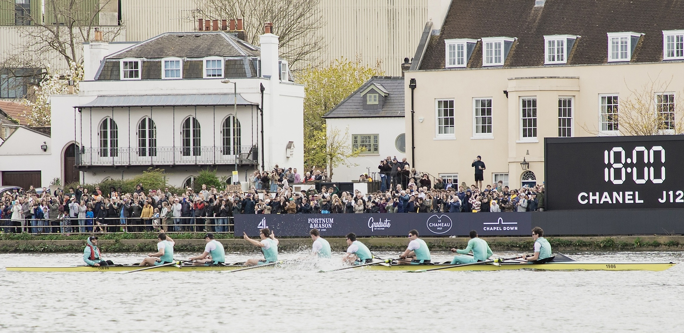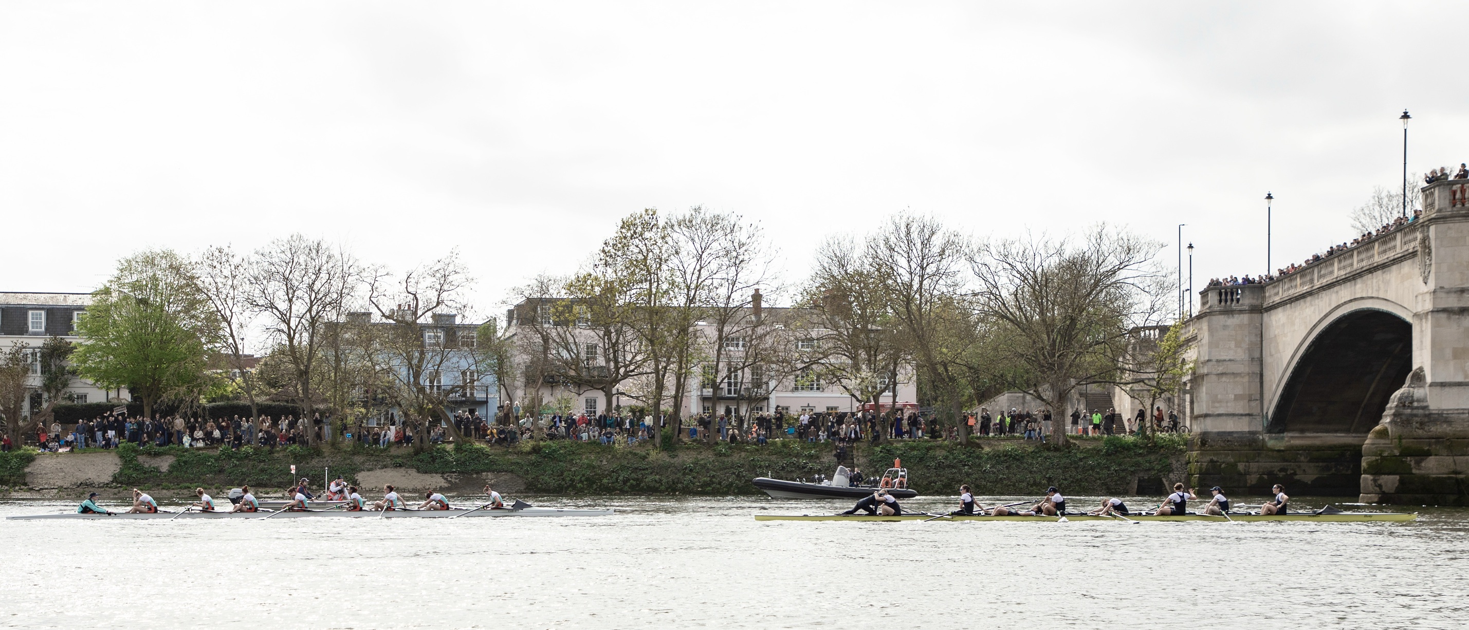 My recent post, A Win for the Boat Race, showed both Blue Boat races in action using pictures provided by the Boat Race Company. Today HTBS is posting photos by Mel Brown that capture the atmosphere at the start at Putney and at the finish at Mortlake.