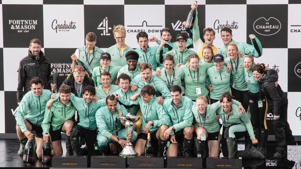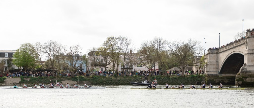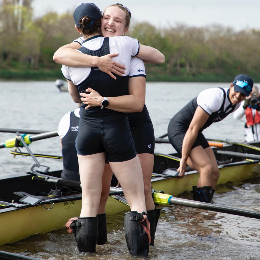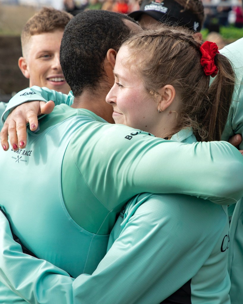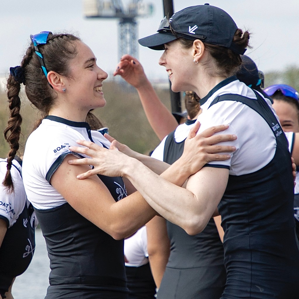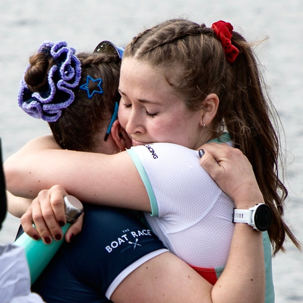 Emily Molins (2, left) and Lilli Freischem (3, right).Coach French embraces victory.Cambridge President Gemma King (Bow) and Florence Brooke of Osiris.What would Oxford stroke Heidi Long be like if she lost?Long and some supporters.The Cambridge Blue Boat victorious.A great effort by Oxford, setting them up well for next year.The Cambridge women’s coach, Paddy Ryan, comforts his rowers while in the background, Blondie celebrate their win.The two Cambridge Presidents, Gemma King and Noam Mouelle.The Oxford women finally receive their elusive trophy.The women’s score now stands at 49-31 in favour of Cambridge.The Cambridge men hold their trophy aloft for the fourth consecutive time. They now have 89 victories to Oxford’s 81.The winning Cambridge crews: the Blue Boat, Goldie and Blondie.The times for the Blue Boats.