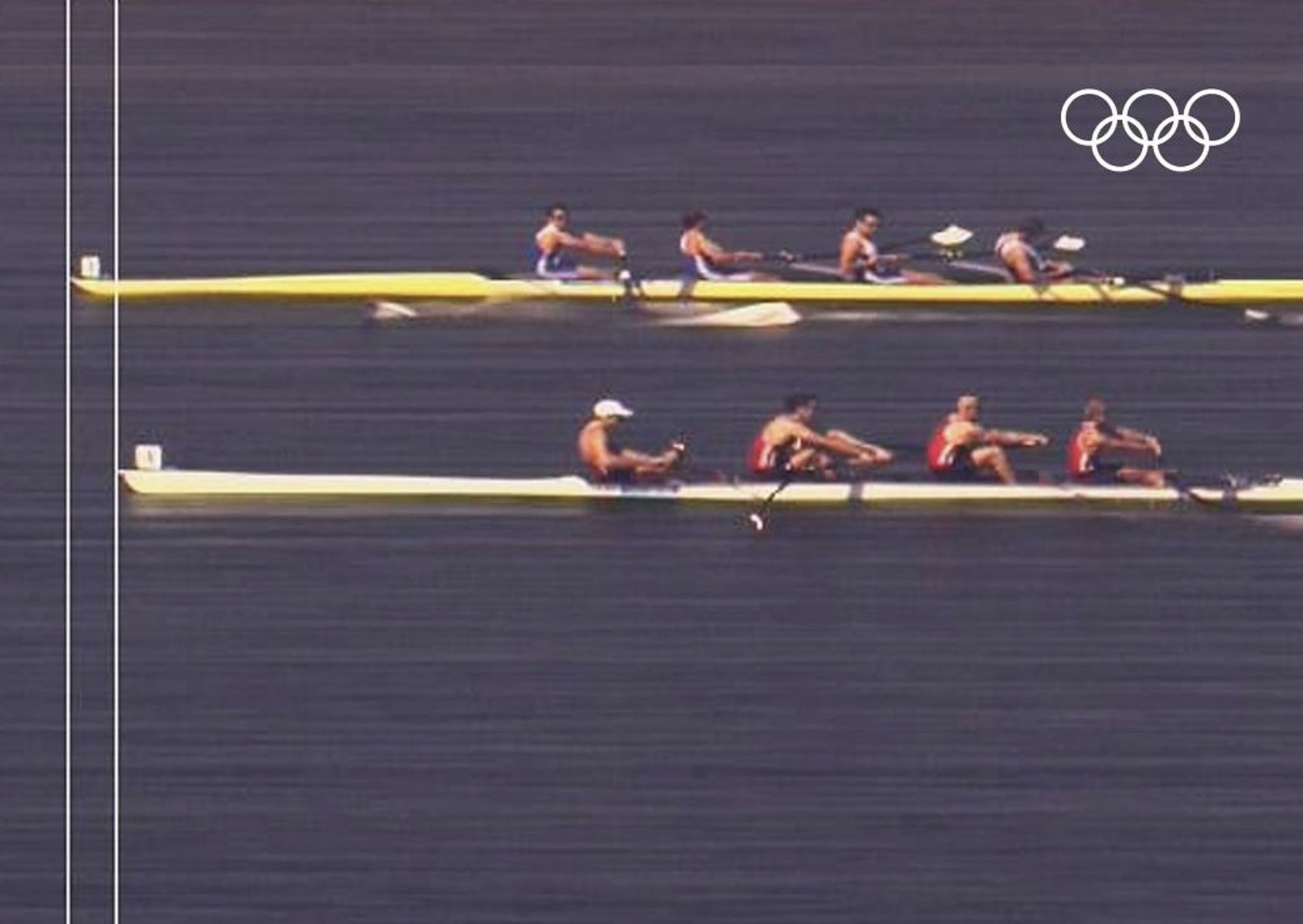 Bowman Steve Williams was in charge of giving the calls in absence of a cox. The last call is usually to sprint to the finish in the last ten or fifteen strokes but “2” man James Cracknell suggested that they start the finishing sprint with thirty strokes to go, a very long way for a final exhausted effort. The thinking was that if it was a close race and the crew did a thirty-stroke sprint, counting down all the way in their heads, they could overtake the Canadians or Italians if they were leading. This was agreed.