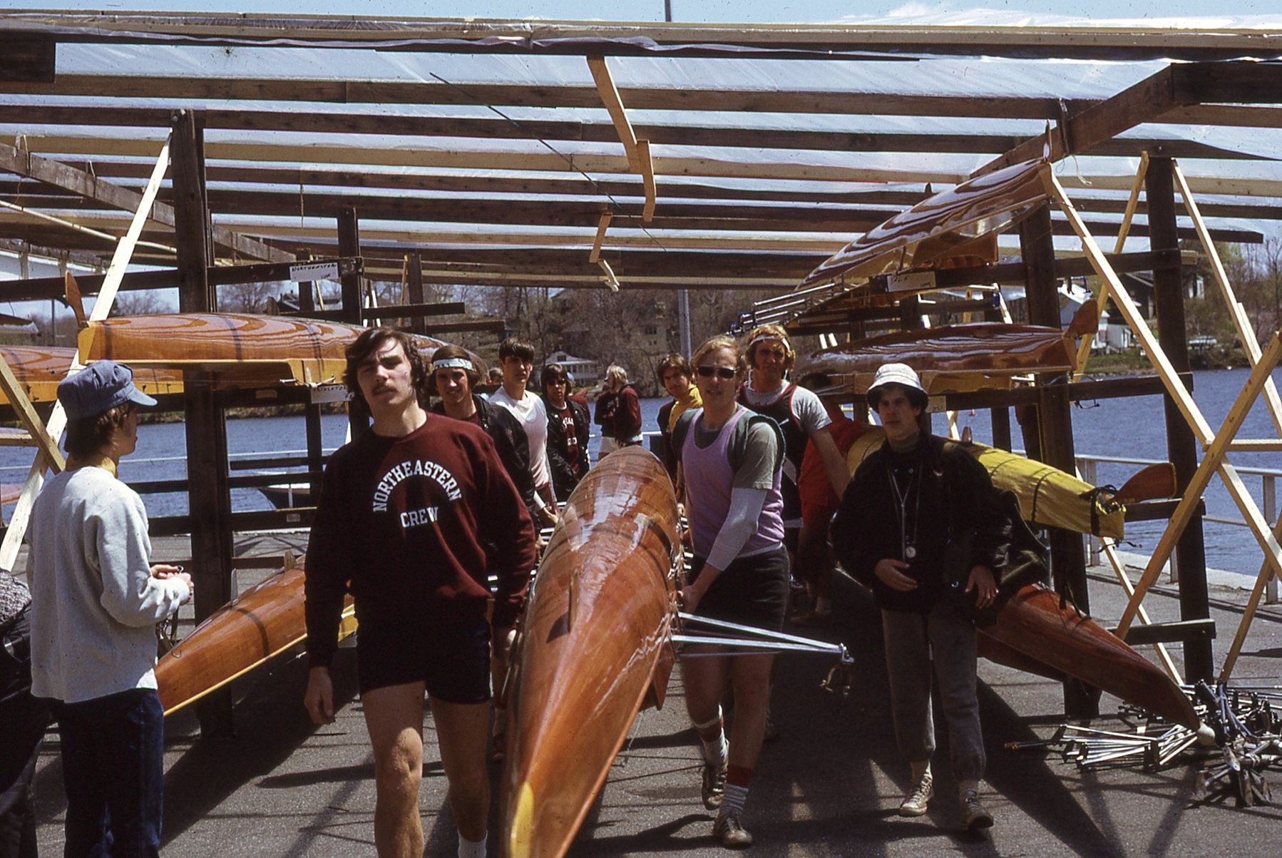 Our story begins in 1969 at Boston University (BU) where head coach, Frank Barrett, noticed the speed potential of the boat. Coach Barrett returned to Northeastern that Fall and discussed the Corsair with head coach Ernie Arlett, who then made arrangements to acquire the shell from BU. We hope to determine when BU acquired the Corsair and any history from years prior.